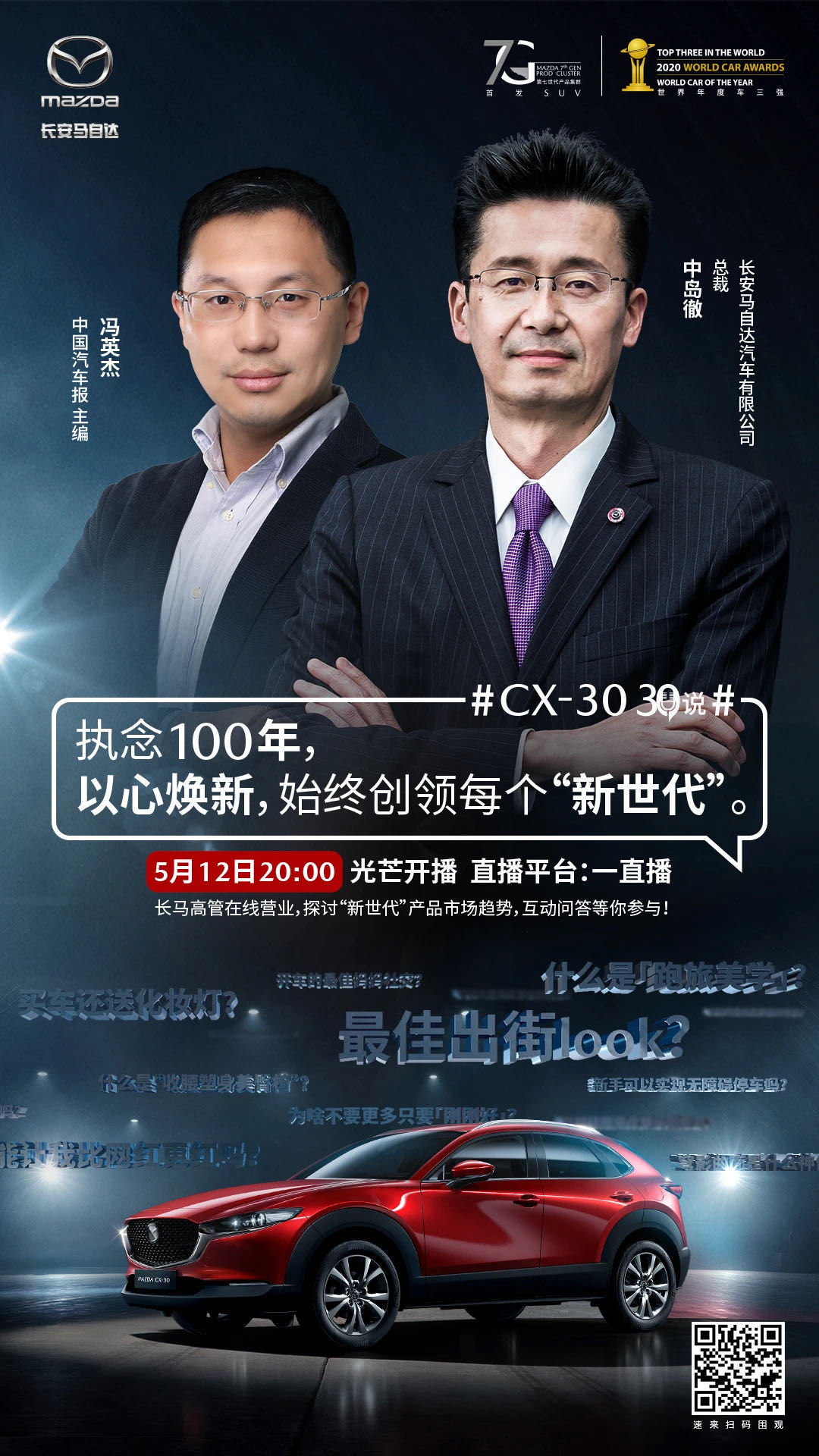 全新架構、全新技術(shù)、全新定位、MAZDA CX-30以極具突破性的產(chǎn)品價(jià)值,為當下的年輕族群定義出全新世代座駕的新風(fēng)尚,以「跑旅美學(xué)」完美匹配當下年輕消費者對「充滿(mǎn)創(chuàng )造力的精致生活」方式的追求,相信TA能夠陪伴國內年輕購車(chē)群體創(chuàng )造出更多元、更多彩、更具品質(zhì)的擁車(chē)生活。